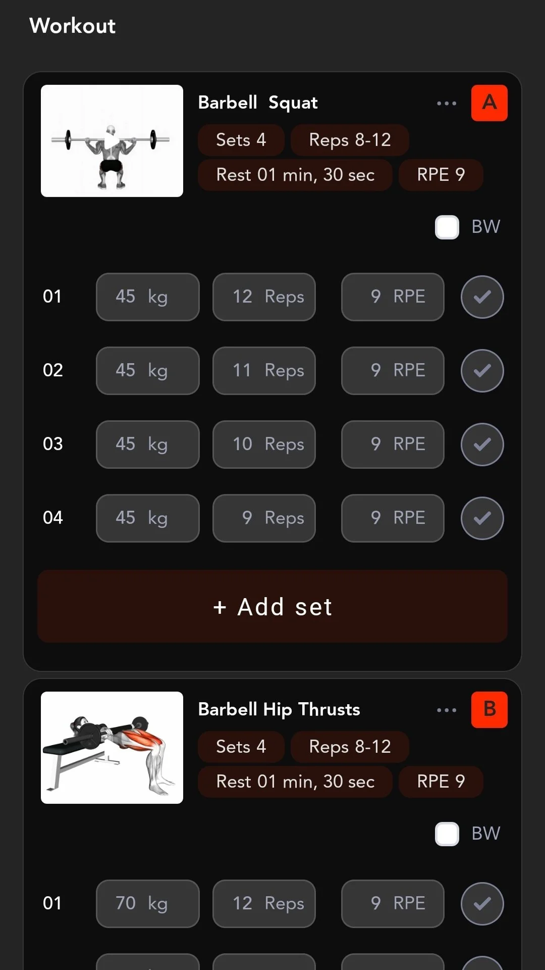 Log your workouts directly in the app; no spreadsheets, no confusion.